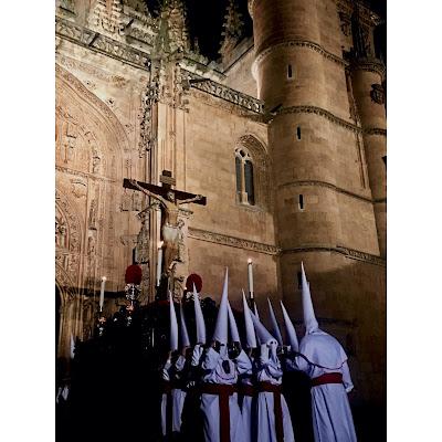 The next (and final) stop was Salamanca where we spent the most time. Celebrating Triduum in Spain has been on my bucket list for quite some time and I feel so blessed to have been able to cross it off. Salamanca is a beautiful city, rich in history and faith. It is perhaps one of my favorite cities in the world. 9000 members of 16 hermandades (confraternities) participate in the Holy Week processions. These processions date back to the 13th century. They began as a means of teaching the illiterate people of Spain the events of the Passion and Resurrection of our Savior. They continue to be an important tradition throughout Spain.